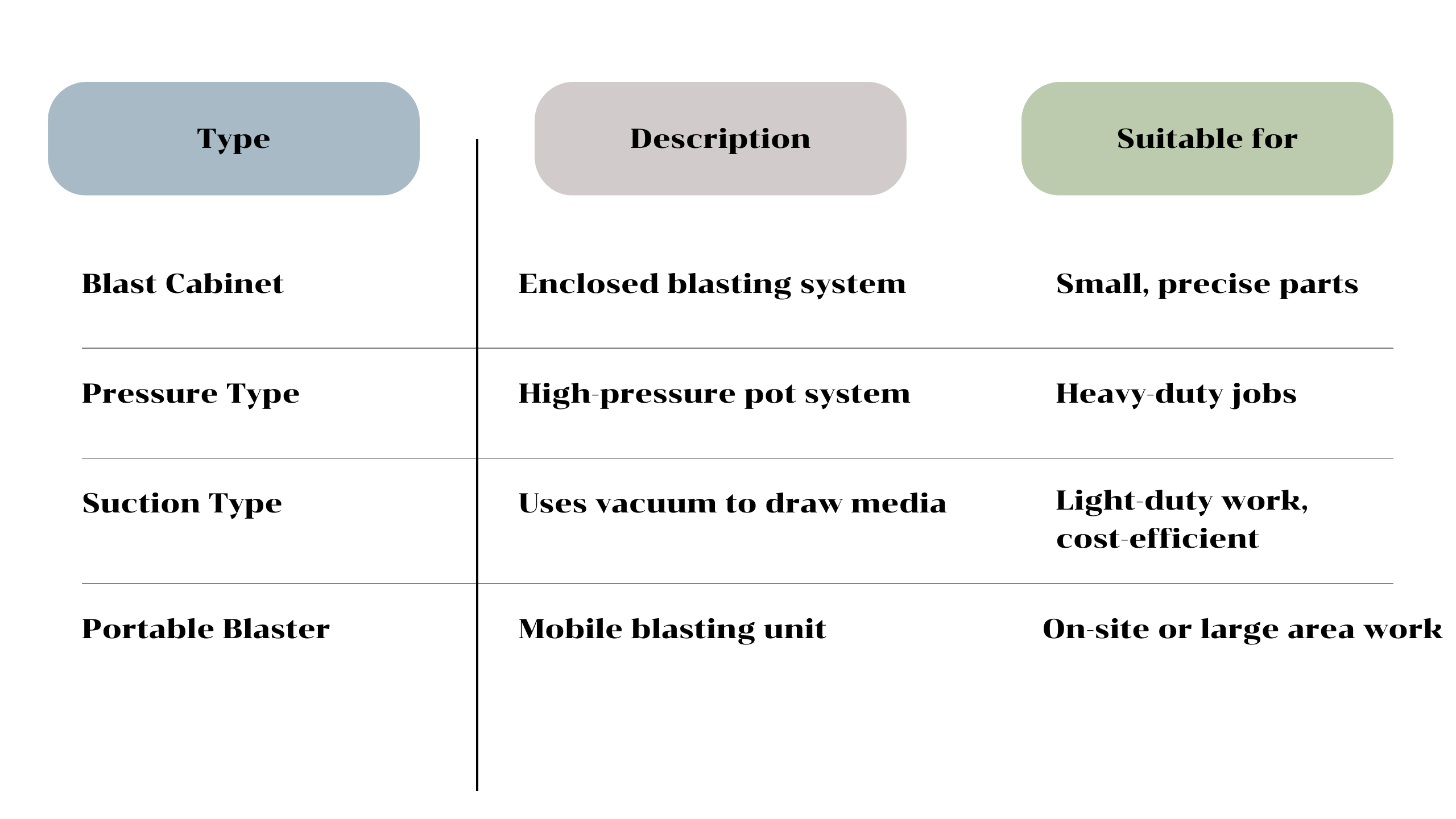 Choosing the right sandblasting machine is crucial for achieving quality results, managing costs, and ensuring safety. Below are key factors to consider