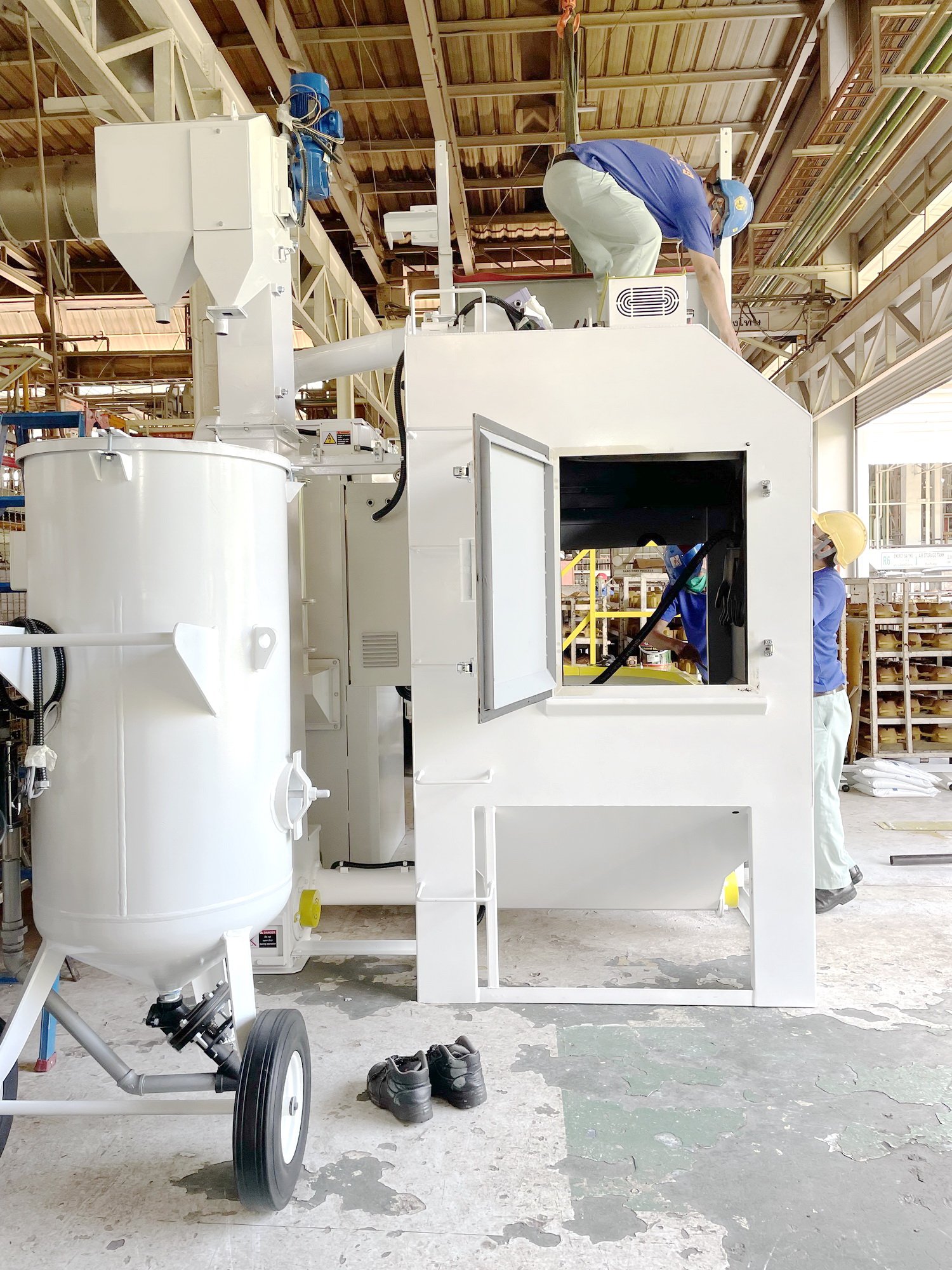 เครื่องพ่นทรายแรงดันลมสูง กับเม็ด Steel shot