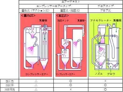 ระบบ Air blasting แบ่งเป็นระบบลมธรรมดา กับระบบเปียก Wet blasting
